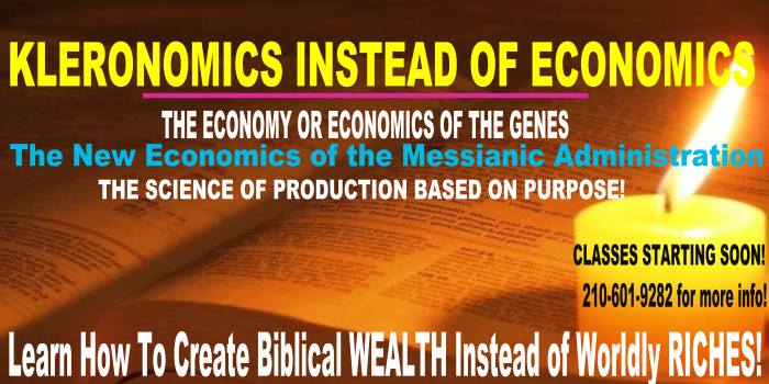 Kleronomics comes from the GREEK word “kleronomos” which means one who receives by lot, an heir, an heir in Messianic usage, one who receives his allotted possession by right of son-ship, one who has acquired or obtained the portion allotted to him.