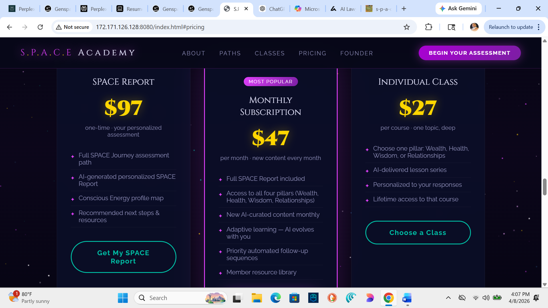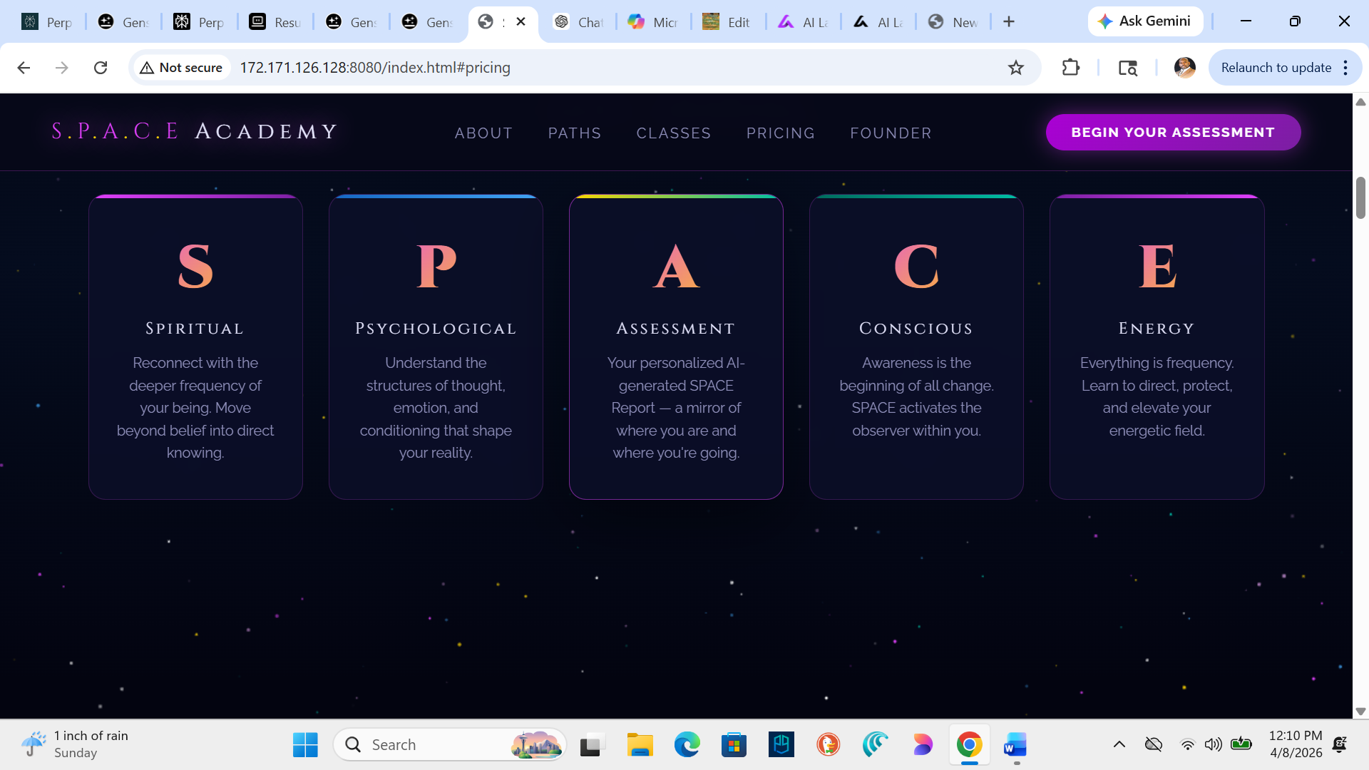 S.P.A.C.E. ACADEMY is built on spiritual clarity, psychological depth, and energetic truth. Thousands of hours of research, testing, and refinement have gone into creating this system. It is designed to help you understand yourself at the deepest level and elevate your conscious energy in a measurable, meaningful way.