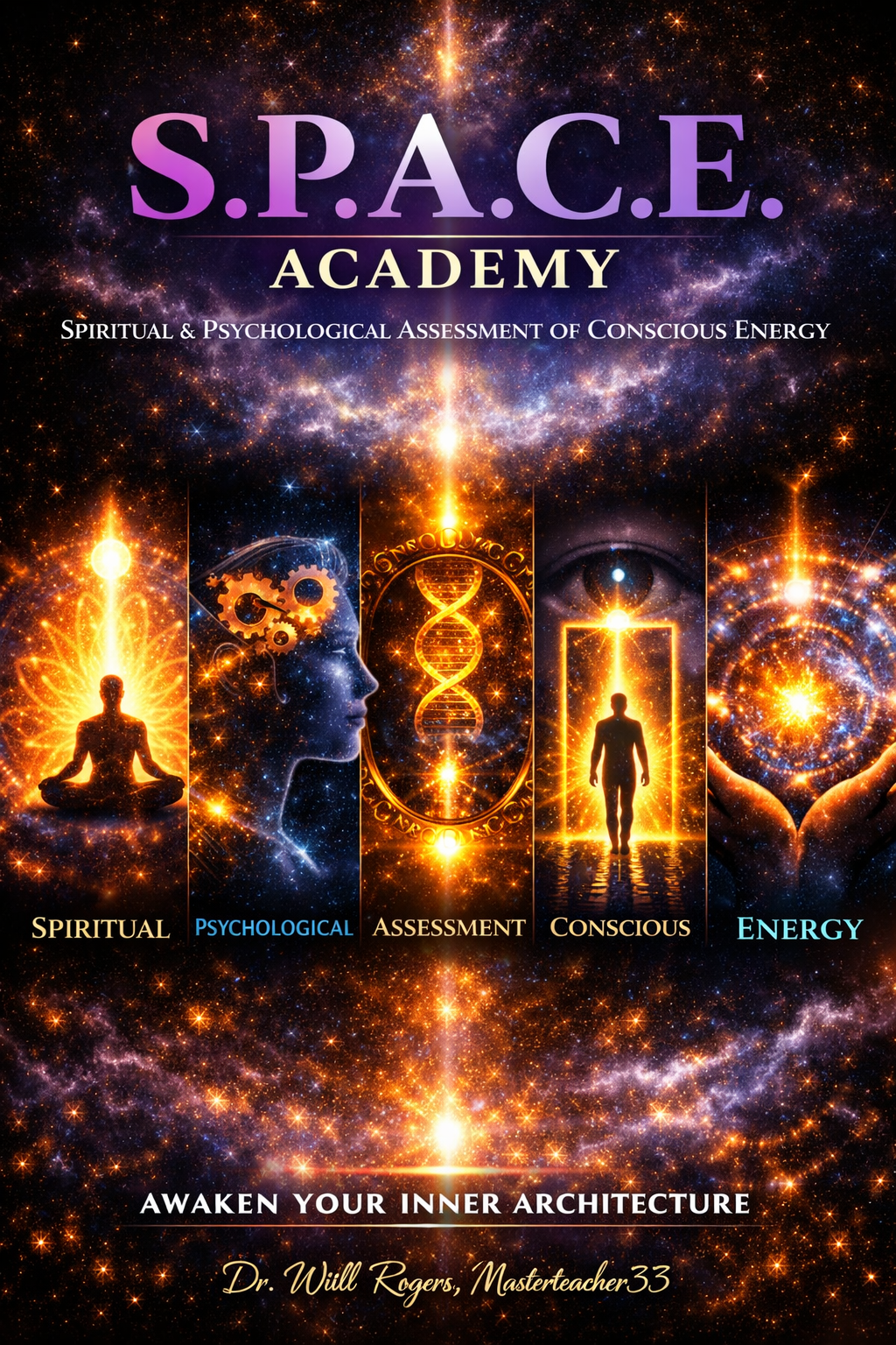 S.P.A.C.E. ACADEMY is a five‑module transformational program that reveals the architecture of your inner world. It shows you how your Spirit, Psychology, Alignment, Consciousness, and Energy work together to create your reality.